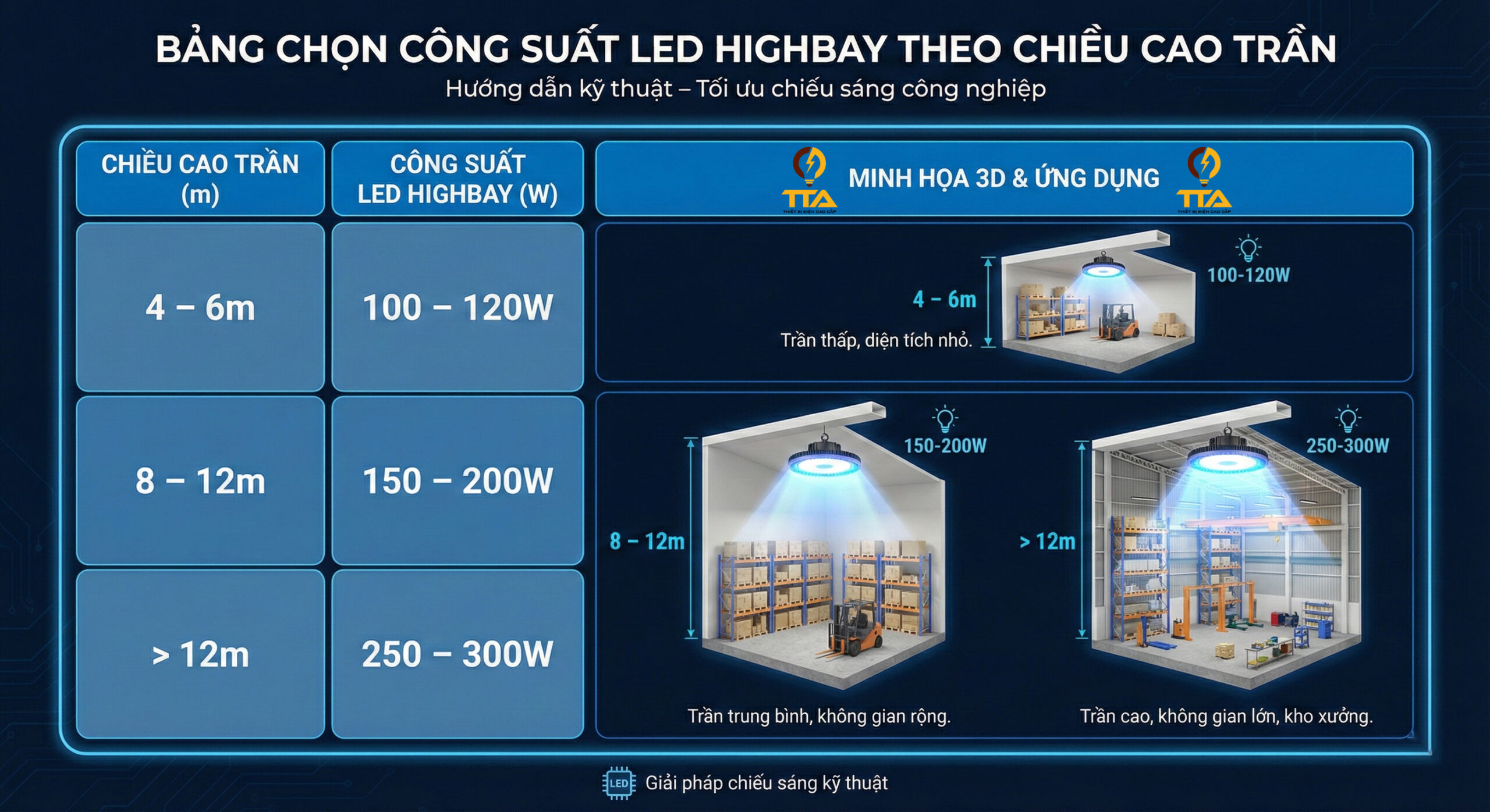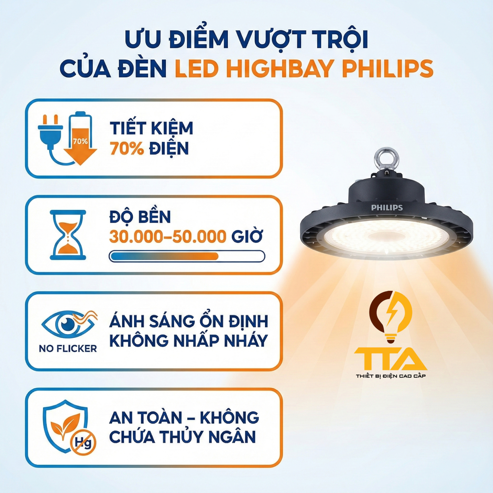 Trong bài viết này, Thiết Bị Điện TTA sẽ bóc tách toàn bộ “sự thật phũ phàng nhưng có lợi” về đèn LED nhà xưởng — từ khả năng tiết kiệm điện, độ bền, hiệu suất, đến cách chọn loại đèn tối ưu nhất cho từng mô hình.