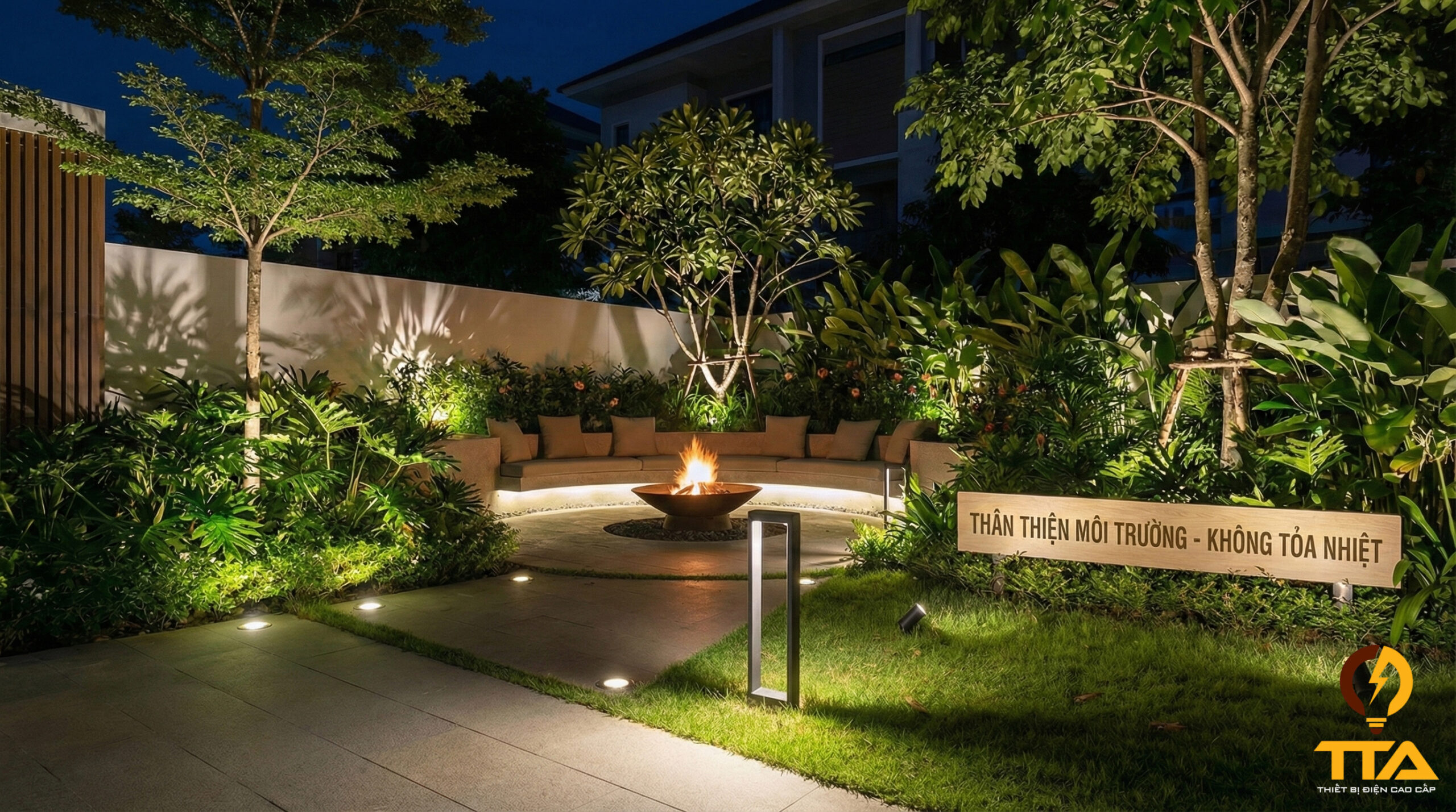 Ánh sáng LED cho màu trung thực, không nóng và không làm phai màu cây xanh hay vật liệu xung quanh. Điều này giúp không gian sân vườn luôn rực rỡ, thân thiện và an toàn cho con người – vật nuôi.