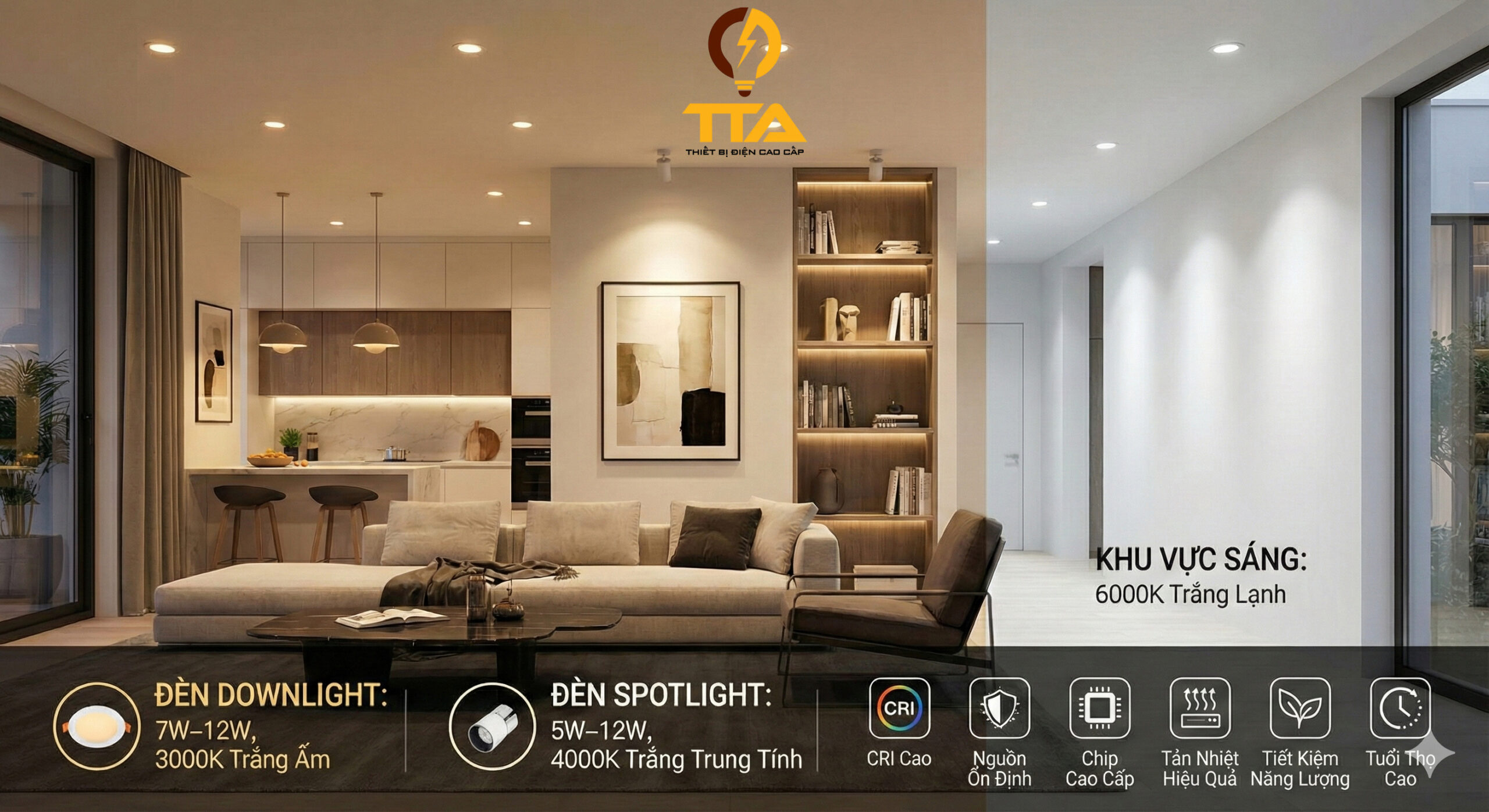 Thiết bị điện TTA – Ánh sáng chuẩn, tiết kiệm điện, nâng tầm không gian sống