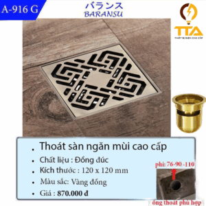 Ga thoát sàn cao cấp là thiết bị thoát nước bằng inox 304 bền đẹp, chống gỉ sét, có khả năng chống hôi, ngăn côn trùng hiệu quả, giúp giữ cho không gian luôn sạch sẽ và thoáng khí. Với thiết kế hiện đại, tốc độ thoát nước nhanh, không gây ứ đọng, sản phẩm phù hợp lắp đặt tại nhà tắm, sân phơi, ban công. Ngoài ra, ga thoát sàn cao cấp còn dễ vệ sinh và thi công linh hoạt, đáp ứng tốt nhu cầu sử dụng trong các công trình dân dụng và hiện đại.