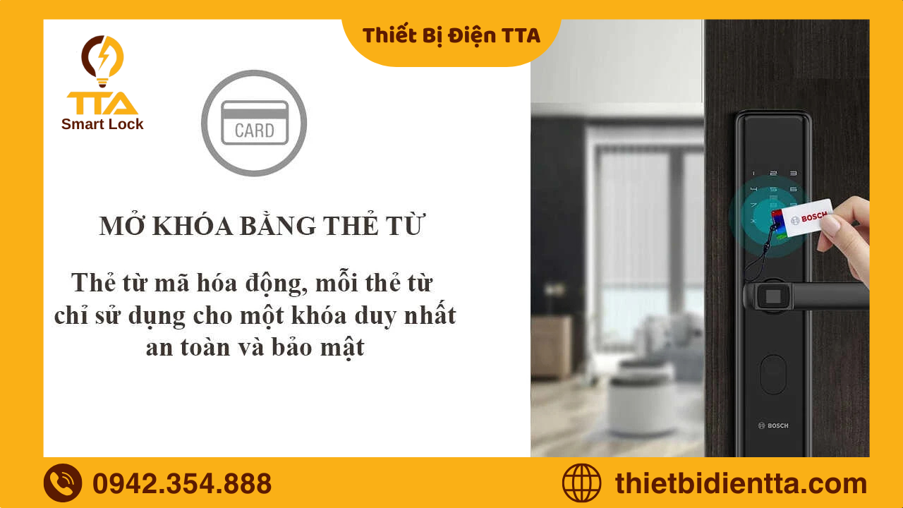 Thẻ từ (thẻ RFID) giúp mở cửa nhanh, đặc biệt phù hợp với người lớn tuổi hoặc trẻ nhỏ: