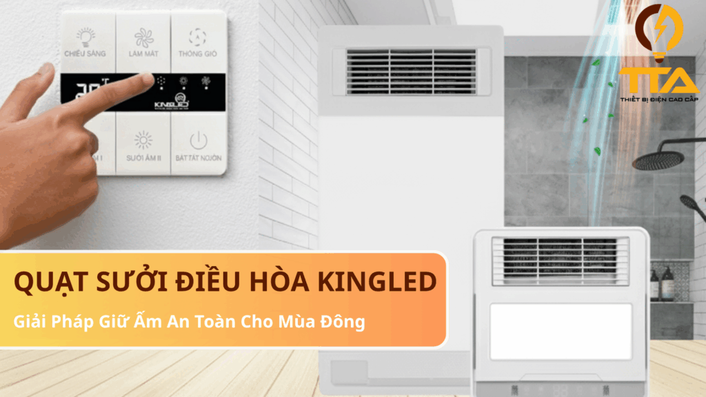 Quạt sưởi điều hòa 4in1 Kingled là giải pháp giữ ấm an toàn, tiết kiệm và phù hợp cho mọi gia đình trong mùa đông 2025. Sản phẩm bền bỉ, chống ẩm, dễ lắp đặt trên nhiều loại trần. Thiết bị điện TTA là nhà phân phối thiết bị điện chính hãng Kingled, cam kết sản phẩm đúng chuẩn – đúng giá – bảo hành 24 tháng. TTA luôn có sẵn hàng, tư vấn kỹ thuật chuẩn theo diện tích phòng và loại trần, hỗ trợ giao nhanh toàn quốc.