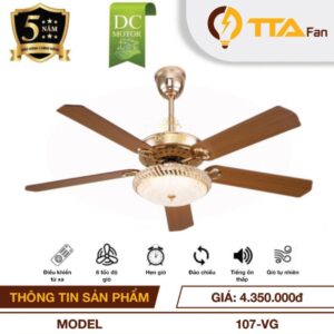 Quạt trần 5 cánh DCT Fan 107 cánh gỗ, kim loại