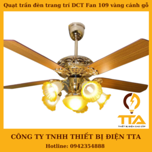 1. Quạt trần đèn trang trí DCT Fan 109 vàng cánh gỗ