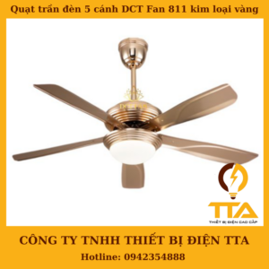 7. Quạt trần đèn 5 cánh DCT Fan 811 kim loại vàng