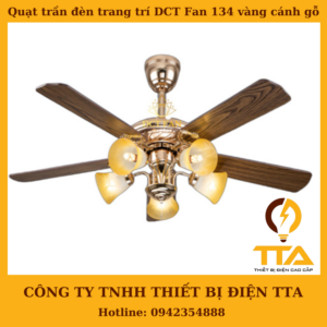 8. Quạt trần đèn trang trí DCT Fan 134 vàng cánh gỗ